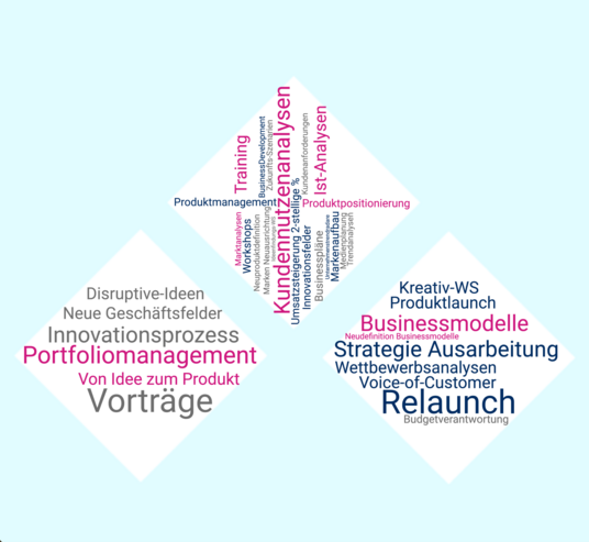 In den vergangenen Jahren habe ich mit Projekten in verschiedenen Branchen nachhaltige Erfolge erzielt und maßgeschneiderte Lösungen im Produkt- und Innovationsmanagement für und mit meinen Kunden erarbeitet.